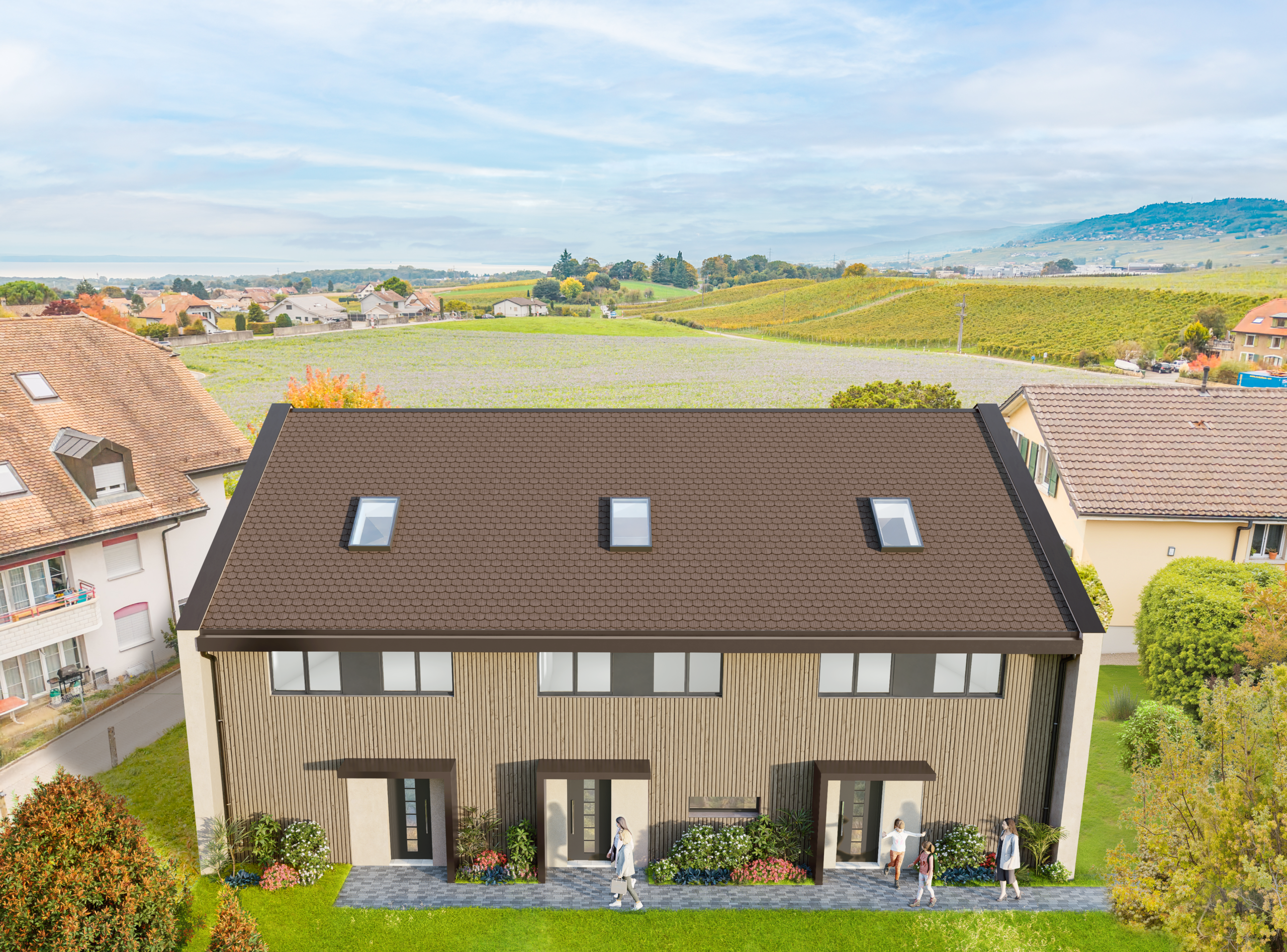 Située en plein centre de la commune d’Etoy, ce magnifique nouveau projet de villas mitoyennes bénéficie d’un emplacement privilégié face à la zone agricole, offrant une vue dégagée et une orientation idéale plein ouest.